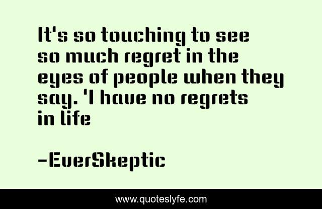 This page presents the quote "It's so touching to see so much regret in the eyes of people when they say. 'I have no regrets in life". Author of this quote is EverSkeptic. This quote is about sadness, regrets, life-lessons,.