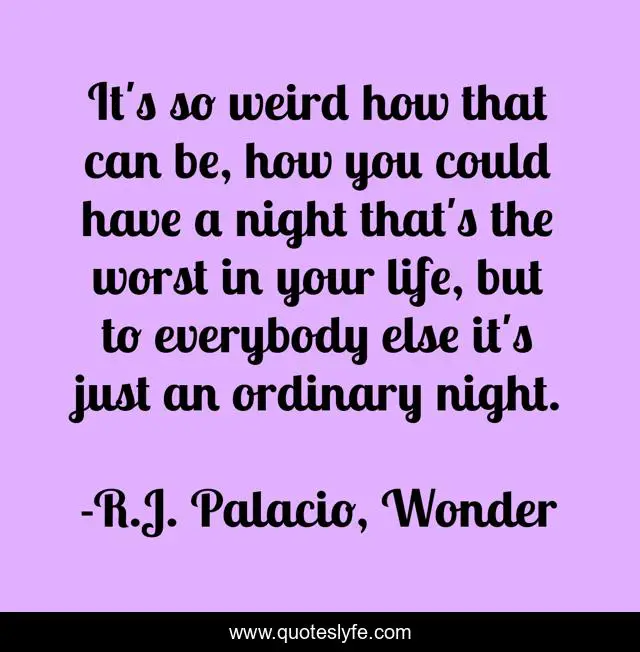 This page presents the quote "It's so weird how that can be, how you could have a night that's the worst in your life, but to everybody else it's just an ordinary night.". Author of this quote is R.J. Palacio, Wonder. .