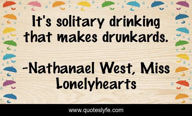 "Nathanael West, Miss Lonelyhearts Quotes." Quoteslyfe.com, 2025. Mon. 08 Dec. 2025. <https://www.quoteslyfe.com/quote/It-s-solitary-drinking-that-makes-drunkards-192843>.