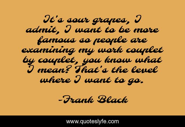 This page presents the quote "It's sour grapes, I admit, I want to be more famous so people are examining my work couplet by couplet, you know what I mean? That's the level where I want to go.". Author of this quote is Frank Black. This quote is about work, people,.