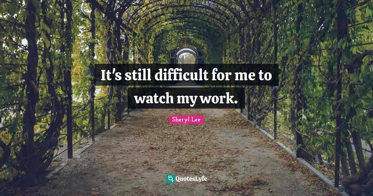 This page presents the quote "It's still difficult for me to watch my work.". Author of this quote is Sheryl Lee. This quote is about watches, work, difficult, stills,.