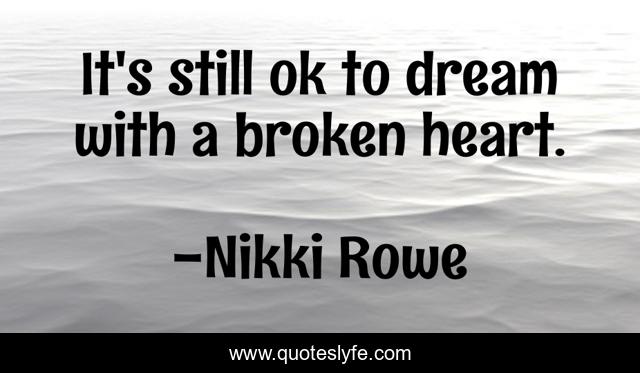 This page presents the quote "It's still ok to dream with a broken heart.". Author of this quote is Nikki Rowe. This quote is about illness, love, dream-big, crps, adjustment, true-love, rehabiliskate, heartbreak, enthusiasm,.