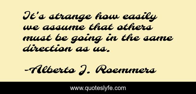 This page presents the quote "It's strange how easily we assume that others must be going in the same direction as us.". Author of this quote is Alberto J. Roemmers. .