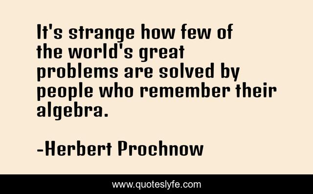 This page presents the quote "It's strange how few of the world's great problems are solved by people who remember their algebra.". Author of this quote is Herbert Prochnow. .