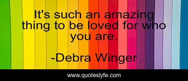 This page presents the quote "It's such an amazing thing to be loved for who you are.". Author of this quote is Debra Winger. .