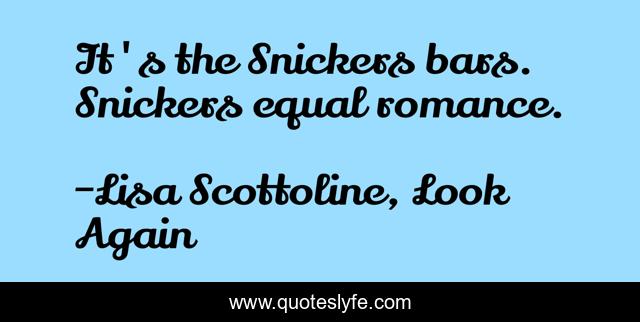 This page presents the quote "It's the Snickers bars. Snickers equal romance.". Author of this quote is Lisa Scottoline, Look Again. This quote is about romance, humor,.