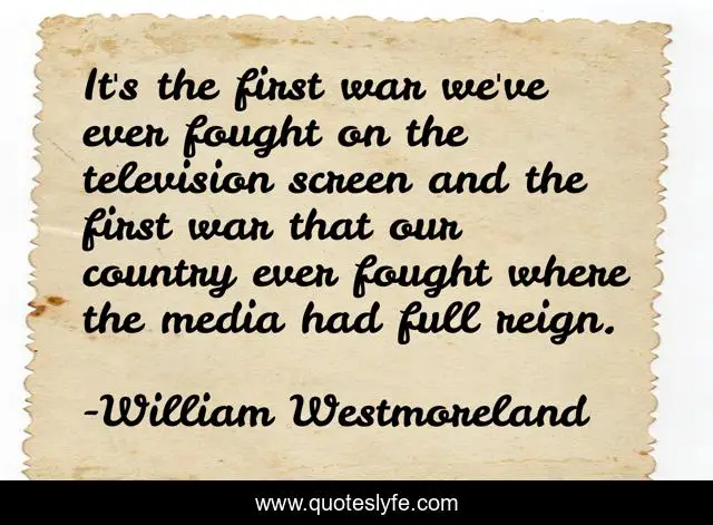 This page presents the quote "It's the first war we've ever fought on the television screen and the first war that our country ever fought where the media had full reign.". Author of this quote is William Westmoreland. This quote is about media, television, country,.