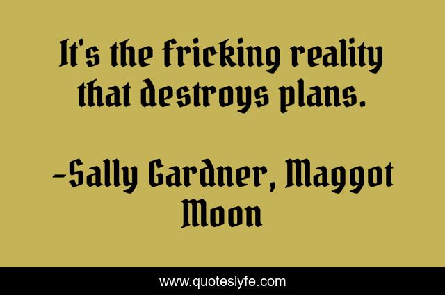 "Sally Gardner, Maggot Moon Quotes." Quoteslyfe.com, 2025. Sun. 07 Dec. 2025. <https://www.quoteslyfe.com/quote/It-s-the-fricking-reality-that-destroys-94125>.