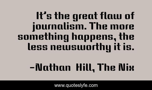 "Nathan Hill, The Nix Quotes." Quoteslyfe.com, 2025. Tue. 09 Dec. 2025. <https://www.quoteslyfe.com/quote/It-s-the-great-flaw-of-journalism-256650>.