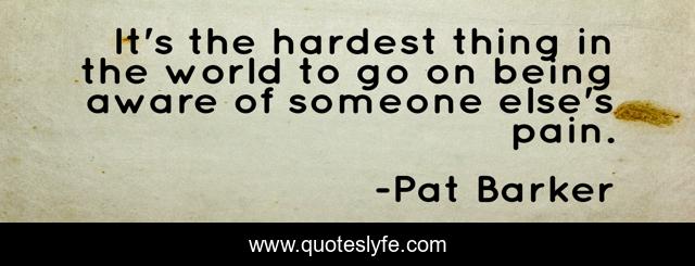 This page presents the quote "It's the hardest thing in the world to go on being aware of someone else's pain.". Author of this quote is Pat Barker. This quote is about empathy, pain,.