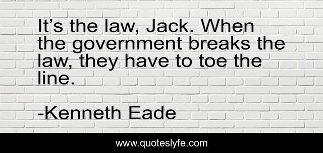 This page presents the quote "It’s the law, Jack. When the government breaks the law, they have to toe the line.". Author of this quote is Kenneth Eade. This quote is about government-abuse, law, government-corruption,.