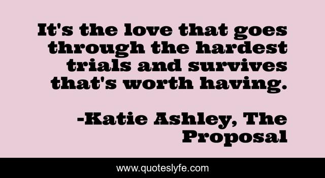 This page presents the quote "It's the love that goes through the hardest trials and survives that's worth having.". Author of this quote is Katie Ashley, The Proposal. .