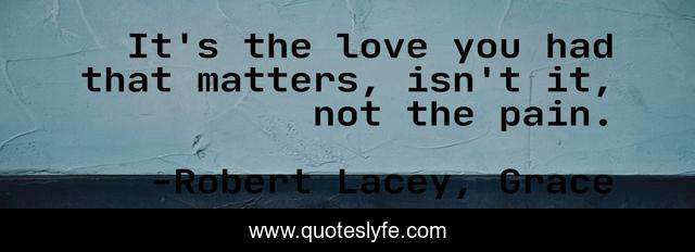 This page presents the quote "It's the love you had that matters, isn't it, not the pain.". Author of this quote is Robert Lacey, Grace. This quote is about love, pain, affection,.