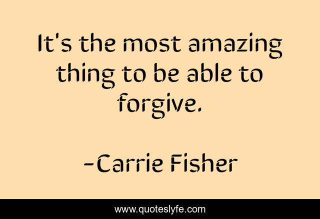 This page presents the quote "It's the most amazing thing to be able to forgive.". Author of this quote is Carrie Fisher. This quote is about most amazing, most, forgive,.