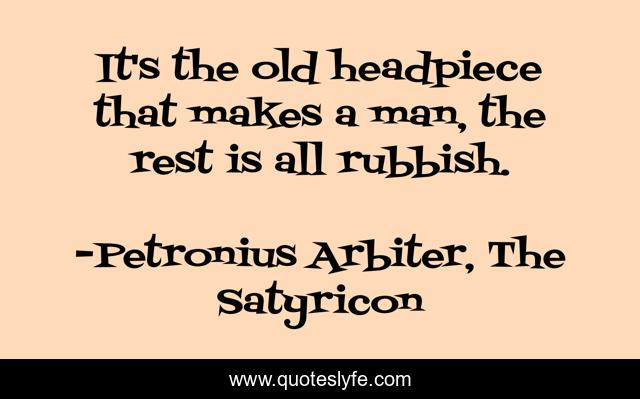 This page presents the quote "It's the old headpiece that makes a man, the rest is all rubbish.". Author of this quote is Petronius Arbiter, The Satyricon. This quote is about philosophical, humour,.
