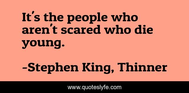 This page presents the quote "It's the people who aren't scared who die young.". Author of this quote is Stephen King, Thinner. This quote is about youth, death,.