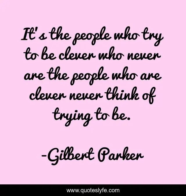 This page presents the quote "It's the people who try to be clever who never are the people who are clever never think of trying to be.". Author of this quote is Gilbert Parker. This quote is about clever, think, people,.