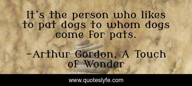 This page presents the quote "It’s the person who likes to pat dogs to whom dogs come for pats.". Author of this quote is Arthur Gordon, A Touch of Wonder. .