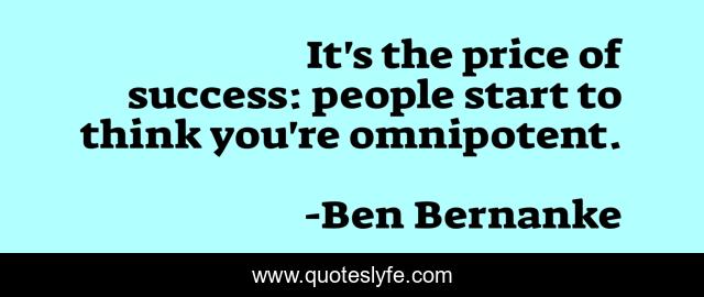 This page presents the quote "It's the price of success: people start to think you're omnipotent.". Author of this quote is Ben Bernanke. This quote is about start, think, people,.