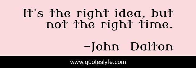 This page presents the quote "It's the right idea, but not the right time.". Author of this quote is John Dalton. This quote is about idea, time,.