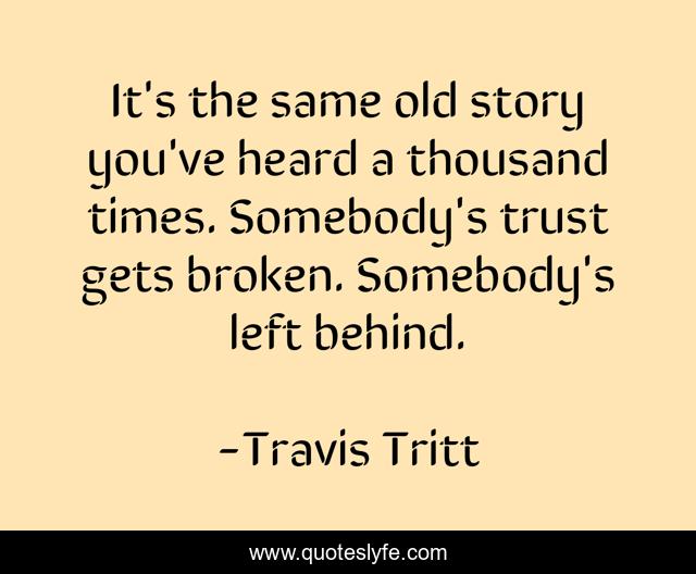 This page presents the quote "It's the same old story you've heard a thousand times. Somebody's trust gets broken. Somebody's left behind.". Author of this quote is Travis Tritt. This quote is about broken, story,.