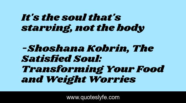 "Shoshana Kobrin, The Satisfied Soul: Transforming Your Food and Weight Worries Quotes." Quoteslyfe.com, 2025. Mon. 08 Dec. 2025. <https://www.quoteslyfe.com/quote/It-s-the-soul-that-s-starving-168216>.