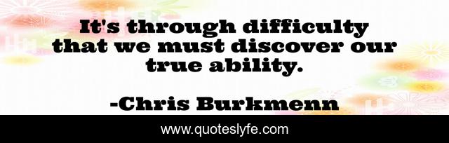 This page presents the quote "It's through difficulty that we must discover our true ability.". Author of this quote is Chris Burkmenn. This quote is about life, strength, god, broken, goals, inspirational, enthusiasm, dreams, struggle,.
