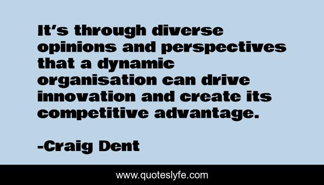 This page presents the quote "It’s through diverse opinions and perspectives that a dynamic organisation can drive innovation and create its competitive advantage.". Author of this quote is Craig Dent. This quote is about competitive-advantage, business, ceo, organisation, leadership, diversity,.