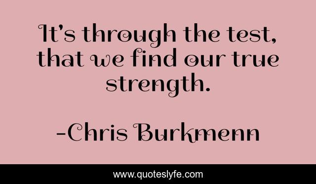 This page presents the quote "It's through the test, that we find our true strength.". Author of this quote is Chris Burkmenn. This quote is about faith, god, work, jesus, live, dreams, believe, achieve, goals,.