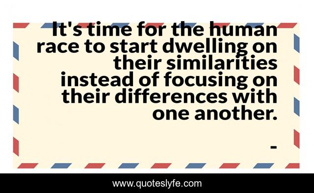 This page presents the quote "It's time for the human race to start dwelling on their similarities instead of focusing on their differences with one another.". Author of this quote is . This quote is about edmond-mbiaka, the-human-race, differences-with-one-another, similarities-with-one-another,.