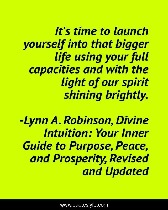 "Lynn A. Robinson, Divine Intuition: Your Inner Guide to Purpose, Peace, and Prosperity, Revised and Updated Quotes." Quoteslyfe.com, 2025. Mon. 15 Dec. 2025. <https://www.quoteslyfe.com/quote/It-s-time-to-launch-yourself-into-232195>.