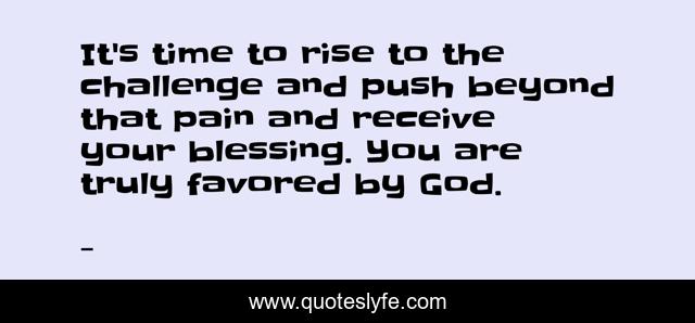 This page presents the quote "It's time to rise to the challenge and push beyond that pain and receive your blessing. You are truly favored by God.". Author of this quote is . This quote is about you-are-favored-by-god, edmond-mbiaka, push-beyond-your-pain, receive-your-blessing, blessings, rise-to-th-challenge,.
