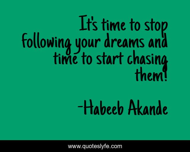 This page presents the quote "It's time to stop following your dreams and time to start chasing them!". Author of this quote is Habeeb Akande. This quote is about determination, procrastination, dreams, ambition,.