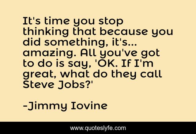 This page presents the quote "It's time you stop thinking that because you did something, it's... amazing. All you've got to do is say, 'OK. If I'm great, what do they call Steve Jobs?'". Author of this quote is Jimmy Iovine. This quote is about thinking, great, time,.