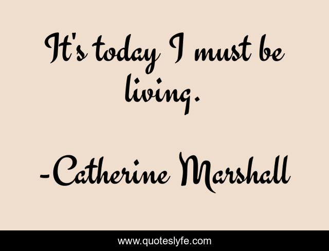 This page presents the quote "It's today I must be living.". Author of this quote is Catherine Marshall. .