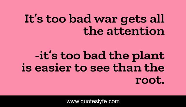 "it’s too bad the plant is easier to see than the root. Quotes." Quoteslyfe.com, 2025. Fri. 05 Dec. 2025. <https://www.quoteslyfe.com/quote/It-s-too-bad-war-gets-all-52261>.
