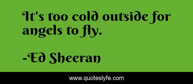 This page presents the quote "It's too cold outside for angels to fly.". Author of this quote is Ed Sheeran. This quote is about a, ed, drug, outside, addict, team, cold, angels, sheeran,.