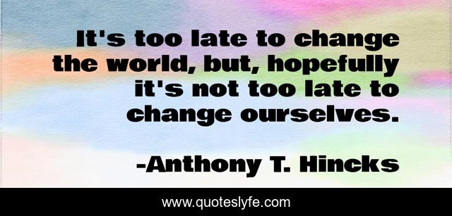This page presents the quote "It's too late to change the world, but, hopefully it's not too late to change ourselves.". Author of this quote is Anthony T. Hincks. This quote is about world, philosophy, ourselves, change, hopefully,.