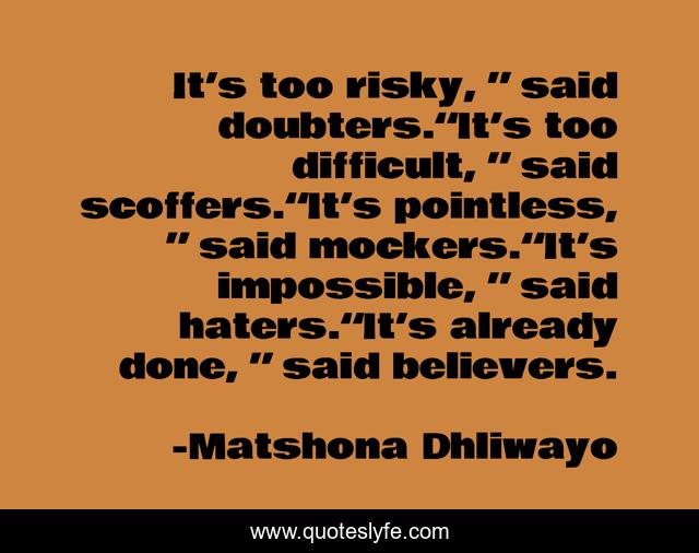 "Matshona Dhliwayo Quotes." Quoteslyfe.com, 2025. Sat. 06 Dec. 2025. <https://www.quoteslyfe.com/quote/It-s-too-risky-said-doubters-It-208345>.
