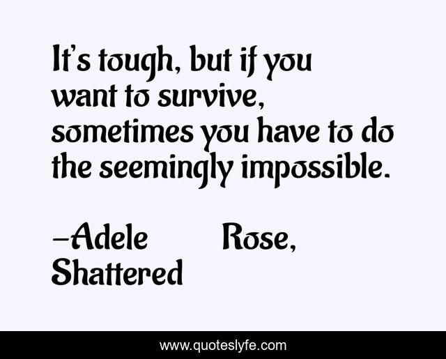 This page presents the quote "It’s tough, but if you want to survive, sometimes you have to do the seemingly impossible.". Author of this quote is Adele Rose, Shattered. This quote is about alex, survival, books, blaine, reading, young-adult-fantasy, young-adult-series,.