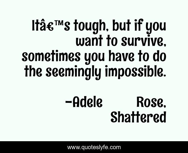 This page presents the quote "It’s tough, but if you want to survive, sometimes you have to do the seemingly impossible.". Author of this quote is Adele Rose, Shattered. This quote is about alex, survival, books, blaine, reading, young-adult-fantasy, young-adult-series,.