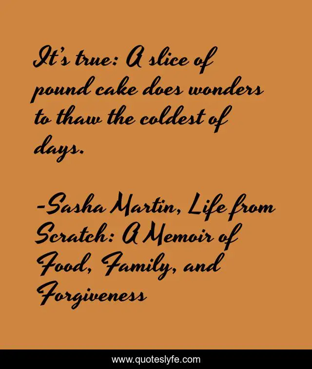 "Sasha Martin, Life from Scratch: A Memoir of Food, Family, and Forgiveness Quotes." Quoteslyfe.com, 2025. Sun. 07 Dec. 2025. <https://www.quoteslyfe.com/quote/It-s-true-A-slice-of-pound-124407>.