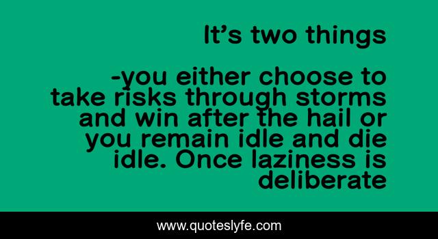 "you either choose to take risks through storms and win after the hail or you remain idle and die idle. Once laziness is deliberate Quotes." Quoteslyfe.com, 2025. Sat. 06 Dec. 2025. <https://www.quoteslyfe.com/quote/It-s-two-things-129288>.