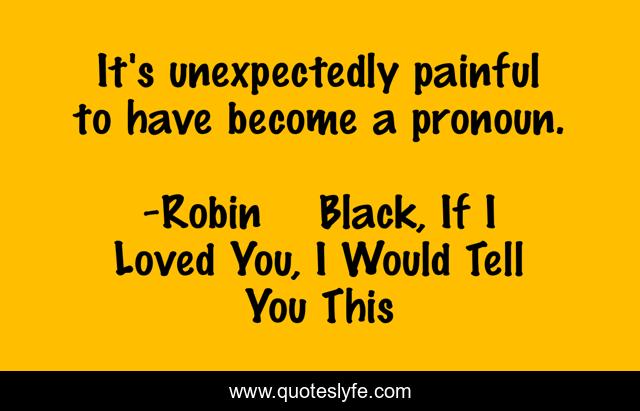 This page presents the quote "It's unexpectedly painful to have become a pronoun.". Author of this quote is Robin Black, If I Loved You, I Would Tell You This. This quote is about relationships, short-story,.