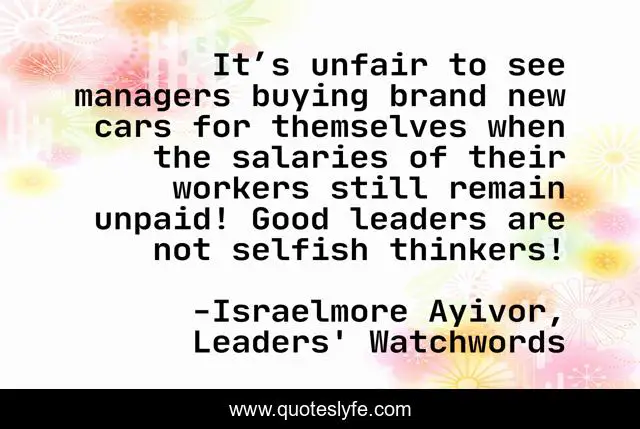 "Israelmore Ayivor, Leaders' Watchwords Quotes." Quoteslyfe.com, 2025. Mon. 08 Dec. 2025. <https://www.quoteslyfe.com/quote/It-s-unfair-to-see-managers-buying-129332>.