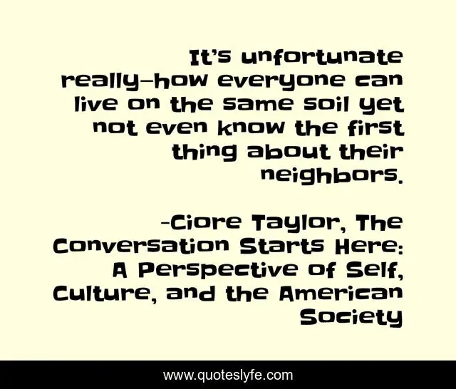 "Ciore Taylor, The Conversation Starts Here: A Perspective of Self, Culture, and the American Society Quotes." Quoteslyfe.com, 2025. Sat. 06 Dec. 2025. <https://www.quoteslyfe.com/quote/It-s-unfortunate-really-how-everyone-can-78228>.