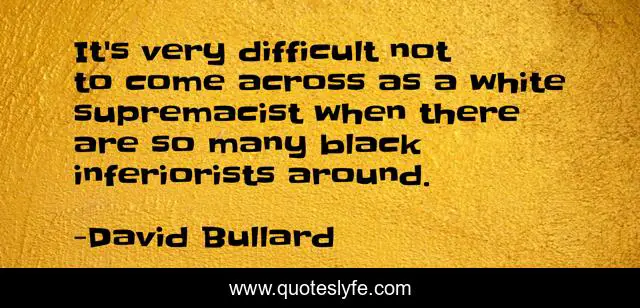 This page presents the quote "It's very difficult not to come across as a white supremacist when there are so many black inferiorists around.". Author of this quote is David Bullard. This quote is about south-africa, racism, white-supremacy,.