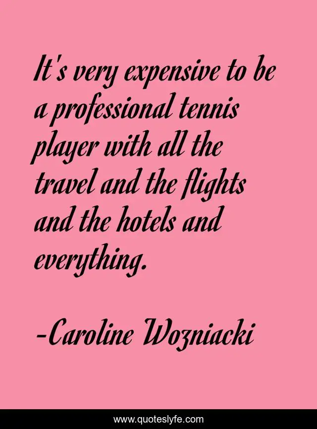 This page presents the quote "It's very expensive to be a professional tennis player with all the travel and the flights and the hotels and everything.". Author of this quote is Caroline Wozniacki. This quote is about professional, tennis,.
