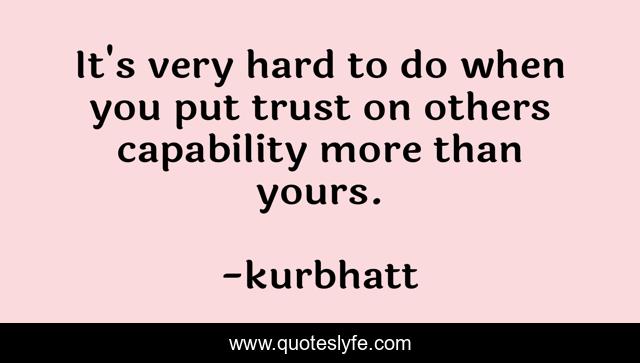 This page presents the quote "It's very hard to do when you put trust on others capability more than yours.". Author of this quote is kurbhatt. This quote is about trust, life, work, other-people, work-ethic,.