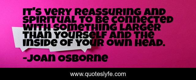 This page presents the quote "It's very reassuring and spiritual to be connected with something larger than yourself and the inside of your own head.". Author of this quote is Joan Osborne. This quote is about faith, unity,.